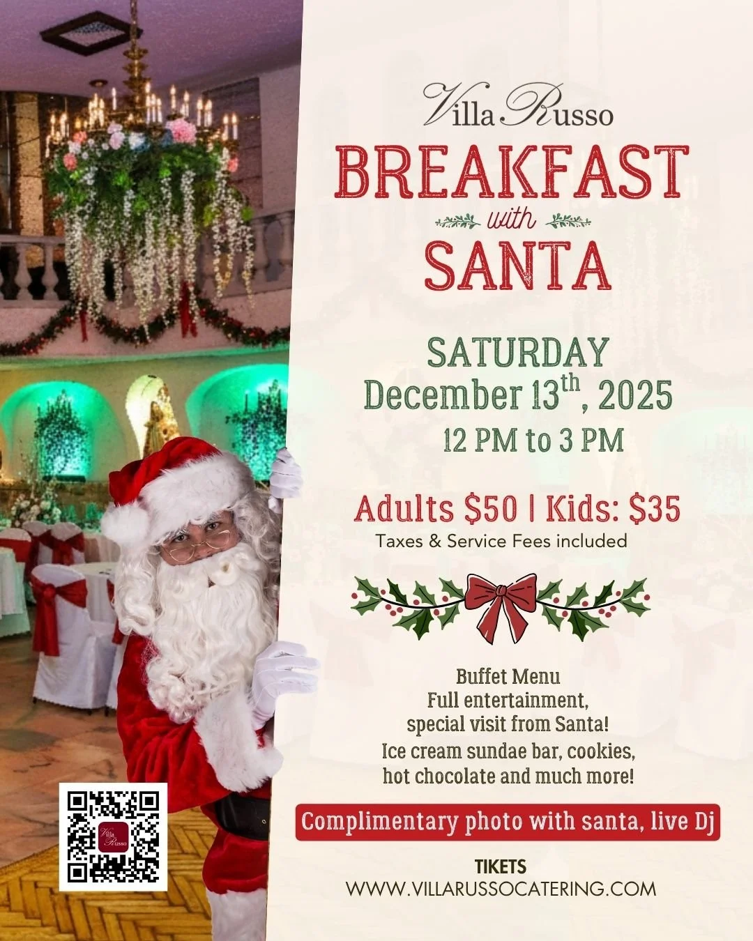 Categories: All Breakfast With Santa Valentine's Party 2025 New Year's Eve 2025 Princess Ball 2024 Gala 2024 Mother's Day 2024 Easter New Year Holiday Party Holiday Fall event Princess Fairytale Luncheon Family Event brunch All / Breakfast With Santa Breakfast With Santa from $35.00